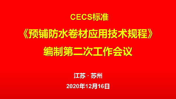 ? ? 2020年12月16日上午,中國工程建設(shè)標(biāo)準(zhǔn)化協(xié)會標(biāo)準(zhǔn)《預(yù)鋪防水卷材應(yīng)用技術(shù)規(guī)程》編制第二次工作會議在蘇州金陵雅都大酒店召開。蘇州中材非金屬礦工業(yè)設(shè)計(jì)研究院防水材料設(shè)計(jì)研究所副所長王玉峰高工主持會議。